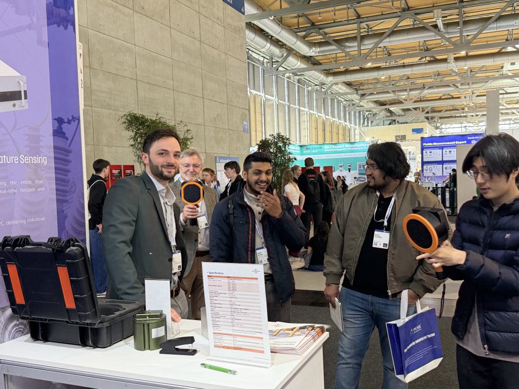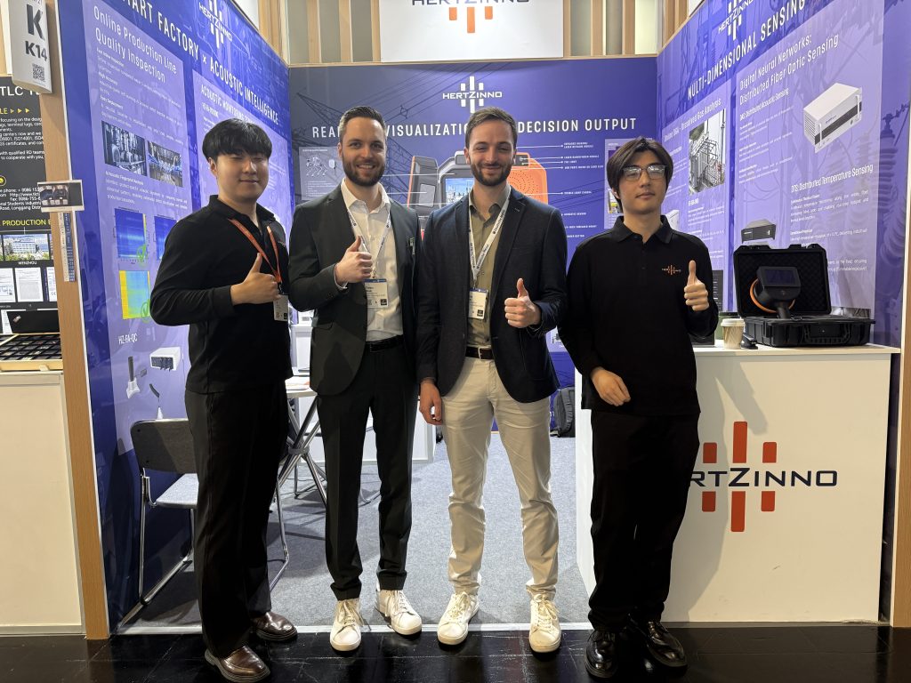联丰迅声(海外品牌Hertzinno)现场展示的手持式声学成像仪、机载式声学成像仪、声纹在线监测系统等声学AI性能旗舰产品,吸引了来自德国、西班牙、阿联酋、沙特阿拉伯、摩洛哥、巴西、智利、墨西哥等众多全球客户的热切关注与合作交流。