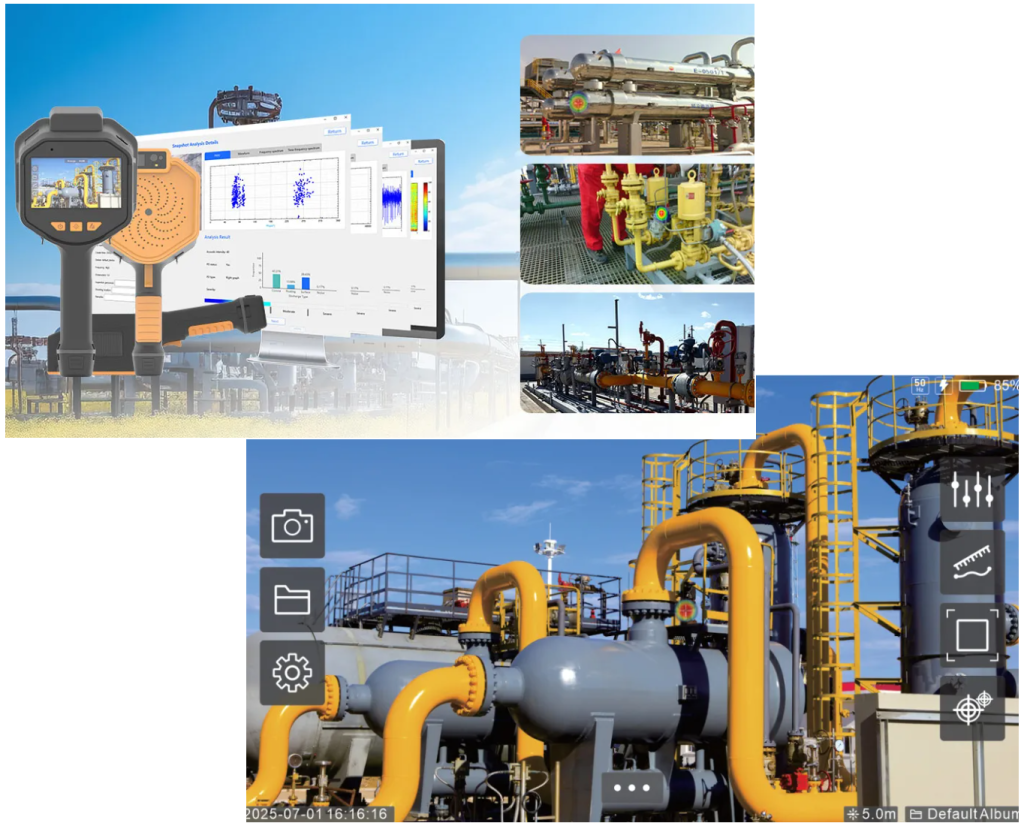 尤其在环境复杂、背景噪音大的厂区内,大型厂区设备与管道分布冗杂密集,人工巡检工作量大,传统方法效率低下,精准定位泄漏源点变得异常困难,无法满足实时检测与预测性维护的需求。