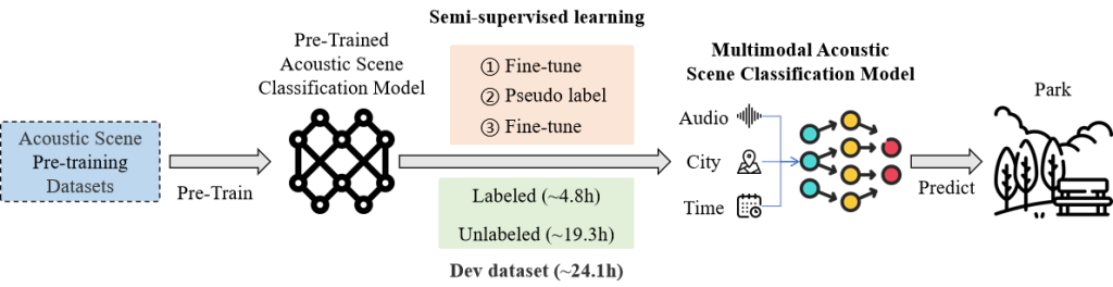 声学场景分类旨在识别环境中具有代表性的声音场景类型(如公园、地铁、餐馆等),是计算听觉系统中的核心任务之一。然而,传统声学场景分类方法普遍将声音场景视作静态的环境,忽略了城市之间以及时间段之间的显著变化。